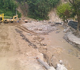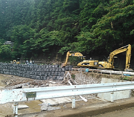 九州北部豪雨災害発生時から現在に至るまで、一日も早い復興のための工事を行いました。
